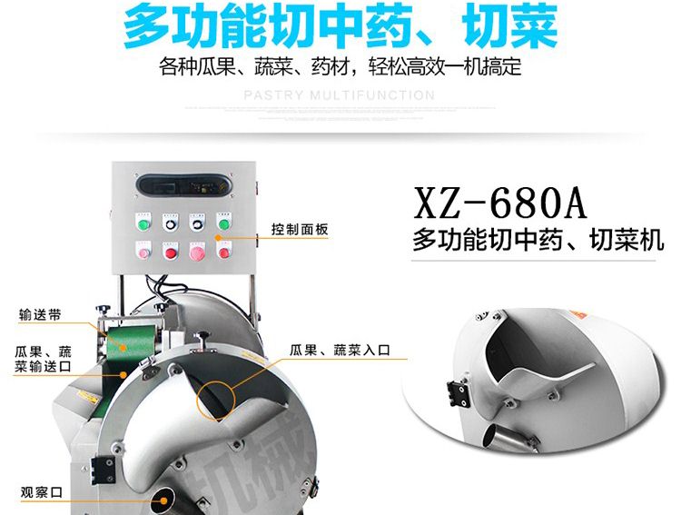 XZ-680A多功能切菜機,一機多用,可切葉菜及根莖類蔬菜,并可切片、絲、條、丁、段,碎等,切菜規(guī)格可根據(jù)不同需要調節(jié)尺寸,方便快捷。隨機共配送三套刀具。
