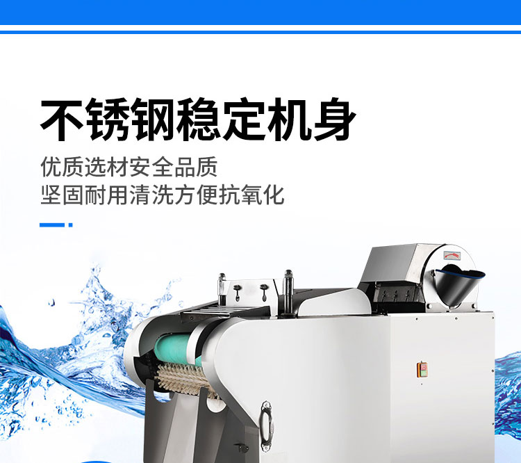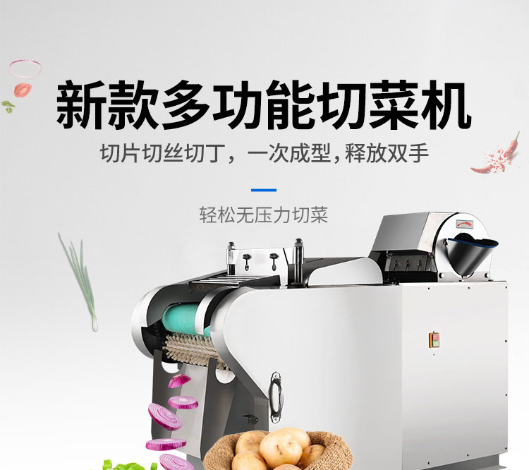 用于硬、軟各種根、莖、葉類蔬菜和海帶的加工,可切制片、塊、絲、丁、菱形、曲線形多種花樣。