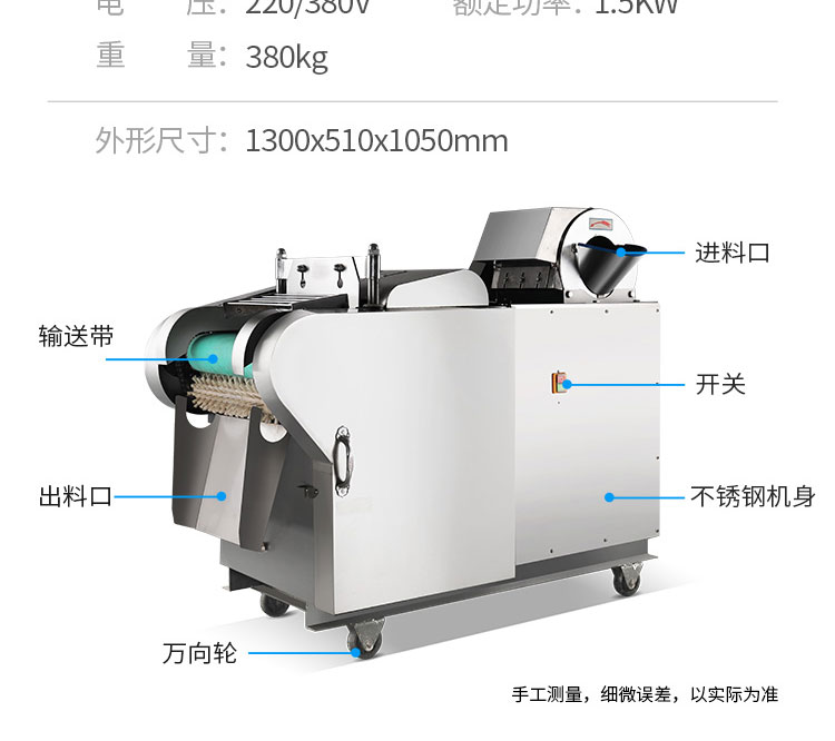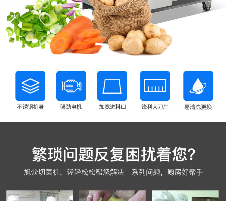旭眾多功能切菜機(jī)是根據(jù)多種進(jìn)口機(jī)在實(shí)地使用中存在不足之處,反復(fù)改進(jìn)設(shè)計(jì)制造,采用不銹鋼和全滾動(dòng)軸承結(jié)構(gòu),具有外形美觀,成熟可靠,使用維修方便等特點(diǎn)。適用蔬菜脫水、速凍、保鮮、腌漬等食品行業(yè)各類蔬菜??汕惺卟耍?br/>