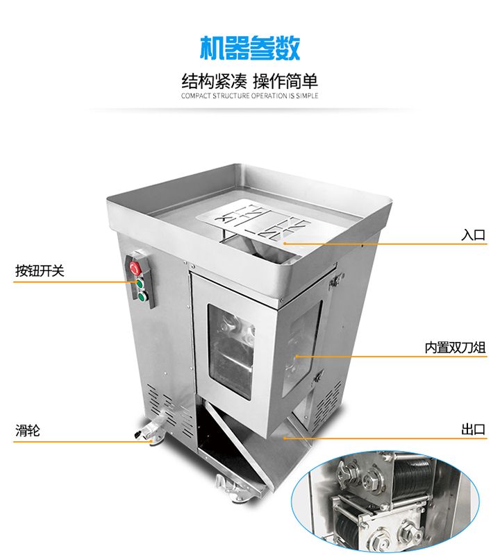 旭眾XZL一次成型切絲機是我廠精心研制出的新產(chǎn)品,該機時尚、簡潔、清洗便捷、操作安全,配有風冷馬達,適合連續(xù)作業(yè);高質(zhì)量全不銹鋼機身。適應(yīng)于酒樓、超市、工廠、學(xué)校、賓館、食堂等各種肉類加工企業(yè)和個體用戶使用。?