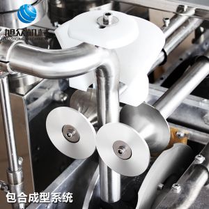 旭眾牌JGB-210型仿手工餃子機是我公司研發(fā)生產的先進自動餃子生產設備。本機采用自動壓面皮包餃子的新工藝技術,克服了舊式餃子機絞龍強力擠壓而帶來的對面筋的損傷,面團不會發(fā)熱,不會糊化,餃子口感佳。