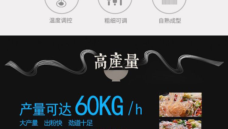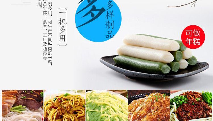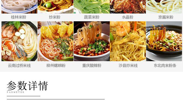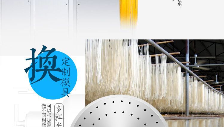 ◆ 米粉機生產(chǎn)多樣性可生產(chǎn)米粉、米線、粉絲、粉條、年糕、玉米面條、各種雜糧粉絲、各種面條、雜糧面條、彩色面條以及以紅薯、玉米、大豆、蠶豆等制成淀粉為原料的等多種食品而且每種食品厚薄、粗細等規(guī)格可根據(jù)需要任意調(diào)整。