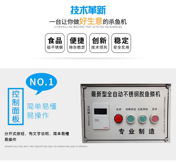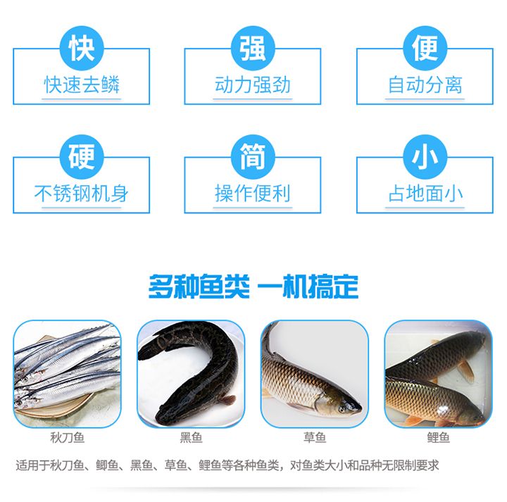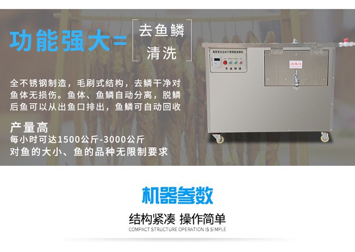 3.功能強(qiáng)大,直接實(shí)現(xiàn)去魚鱗和殺魚的工藝,生產(chǎn)效率高,產(chǎn)量大。