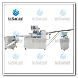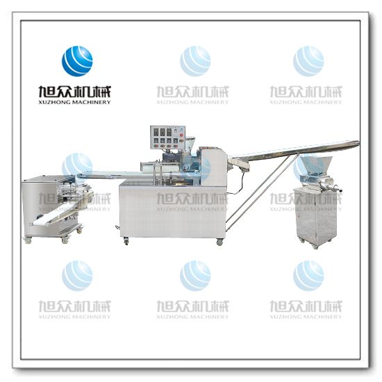 旭眾牌SZ-09A多功能單段酥餅機是經(jīng)面輪將面皮壓成合適厚度,由自動出餡機將餡料充填至面皮上,經(jīng)卷面輪將面皮卷成圓柱狀,后以成型刀具切割成球狀,或是長條狀餅胚,再經(jīng)過打餅成形,整個成形過程不會破壞面皮筋性。