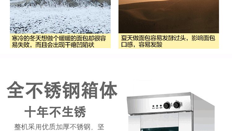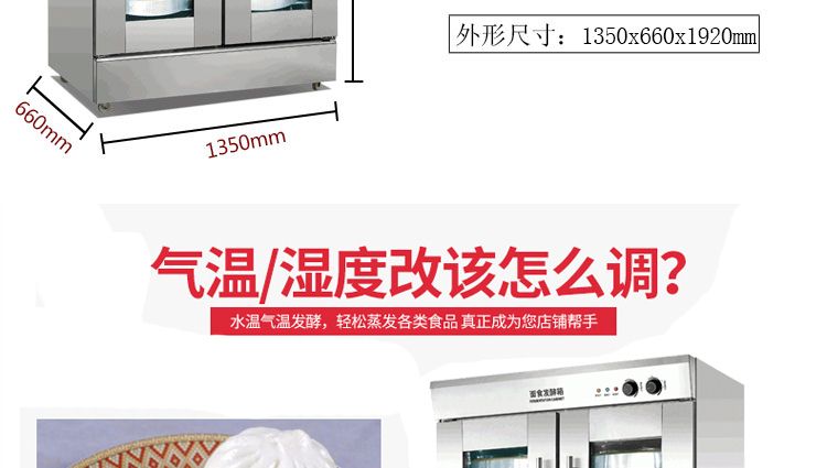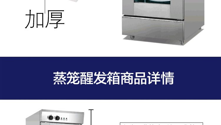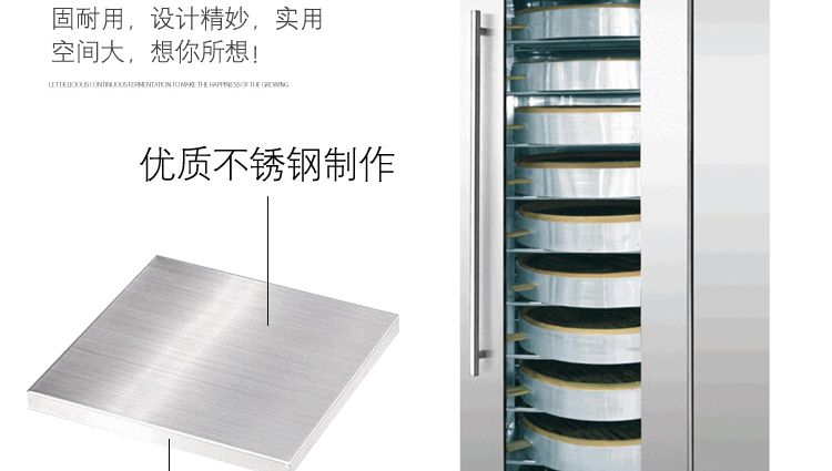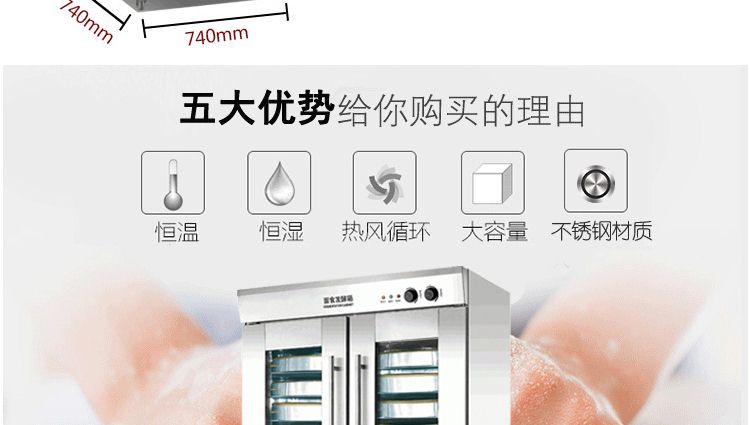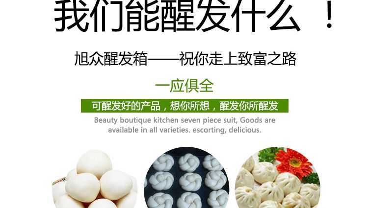 旭眾蒸籠醒發(fā)箱采用全不銹鋼制成,利用電熱管通過自動調(diào)節(jié)使箱內(nèi)熱水加熱,產(chǎn)生大量水蒸氣。使箱內(nèi)濕度達80-85%,可將溫度自動控制在35-40℃之間,形成適合發(fā)酵環(huán)境,并增設加溫干燒管及發(fā)熱片,保持箱內(nèi)溫度以及把水珠加熱霧化,使發(fā)酵過程達到很好效果,是糕點生產(chǎn)配套的理想設備。