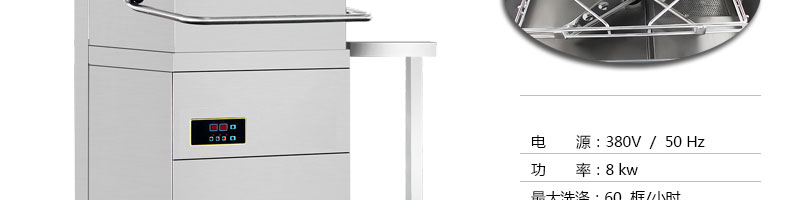 旭眾牌XZ-60揭蓋式洗碗機板材采用標(biāo)1.2mm厚不銹鋼板,主骨架均為國標(biāo)1.5不銹鋼管,底座鋼板為6mm,進(jìn)出口傳動軸均為304#不銹鋼材質(zhì);水泵為意大利進(jìn)口水泵(國標(biāo)15米揚程)不銹鋼食品泵,電器采用知名品牌正泰電器,篩網(wǎng)為激光沖孔。揭蓋式洗碗機主要針對小碗、小碟、杯子類餐具。